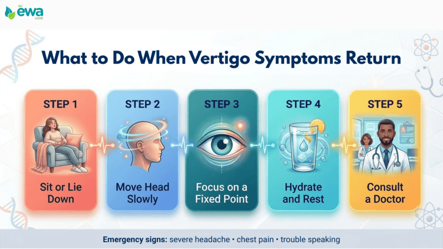 When vertigo symptoms return, focusing on simple and safe actions can help manage the episode more effectively.