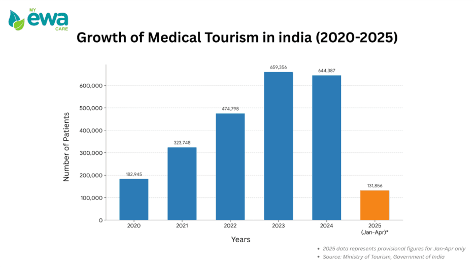 According to the Ministry of Tourism, India recorded 131,856 foreign patients for medical treatment between January–April 2025, highlighting the country’s growing appeal.